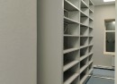 Спроектировали, изготовили и установили мобильные стеллажи серии Т — высокие, вместительные, с выверенной компоновкой между стенами. Расстояния между полками рассчитаны строго под размеры коробов, стеллажи «вписались» в помещение с миллиметровой точностью.