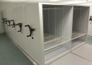 Передвижные стеллажи оставляют всего один рабочий проход, а всё остальное пространство превращают в полезную площадь склада.