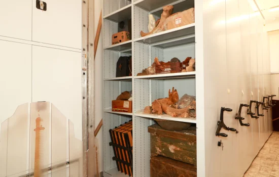 Каждый стеллаж может быть дополнительно оснащен ящиками, дверями, шкафами. Это позволяет организовать эффективное хранение различных видов археологических экспонатов.